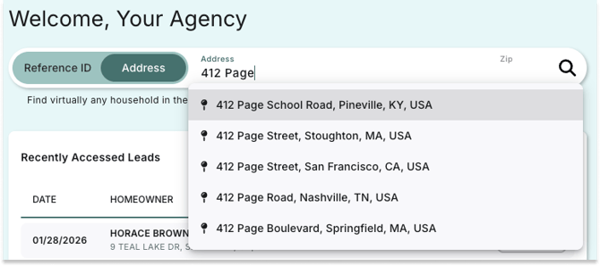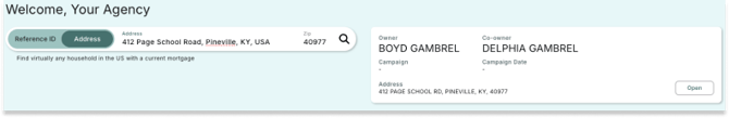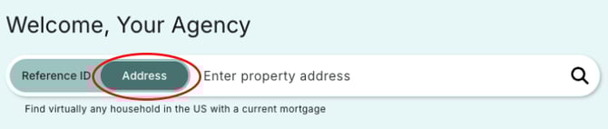Select Address in the search bar to find households by address. This allows you to find virtually any household in the US with a current mortgage.